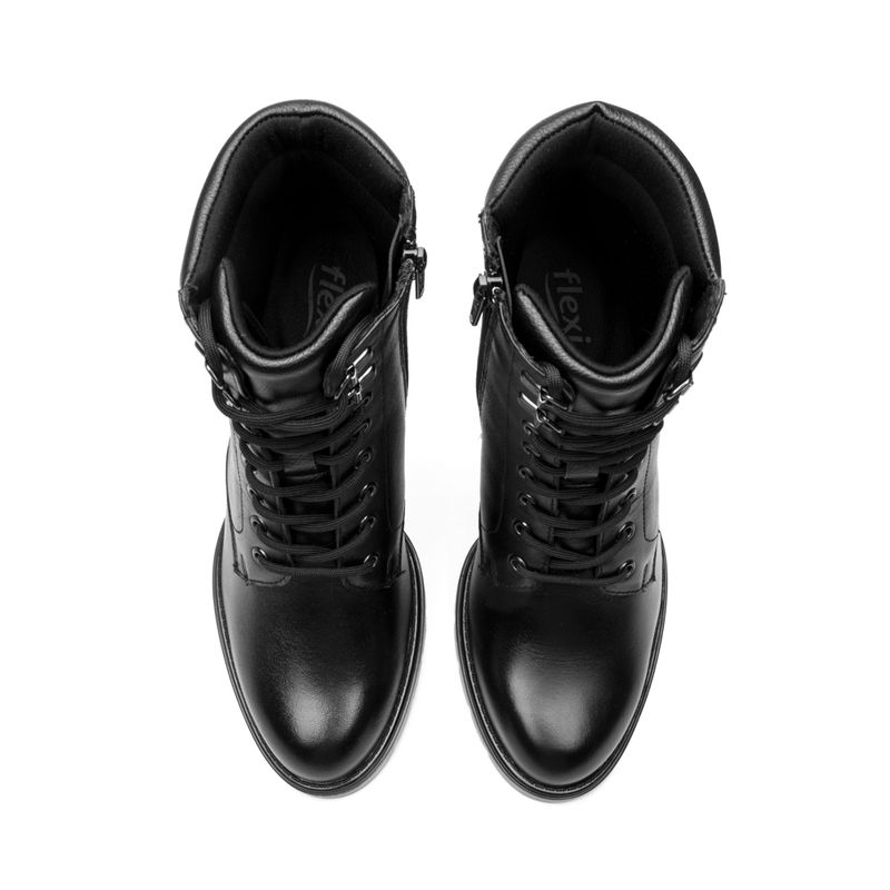 Línea de botines con altura y estilo. Su tacón ancho y su suela dentada te brindarán la estabilidad y comodidad para estar a la moda, cómoda y segura. Están hecho de piel, con un aspecto natural y gran calidad.